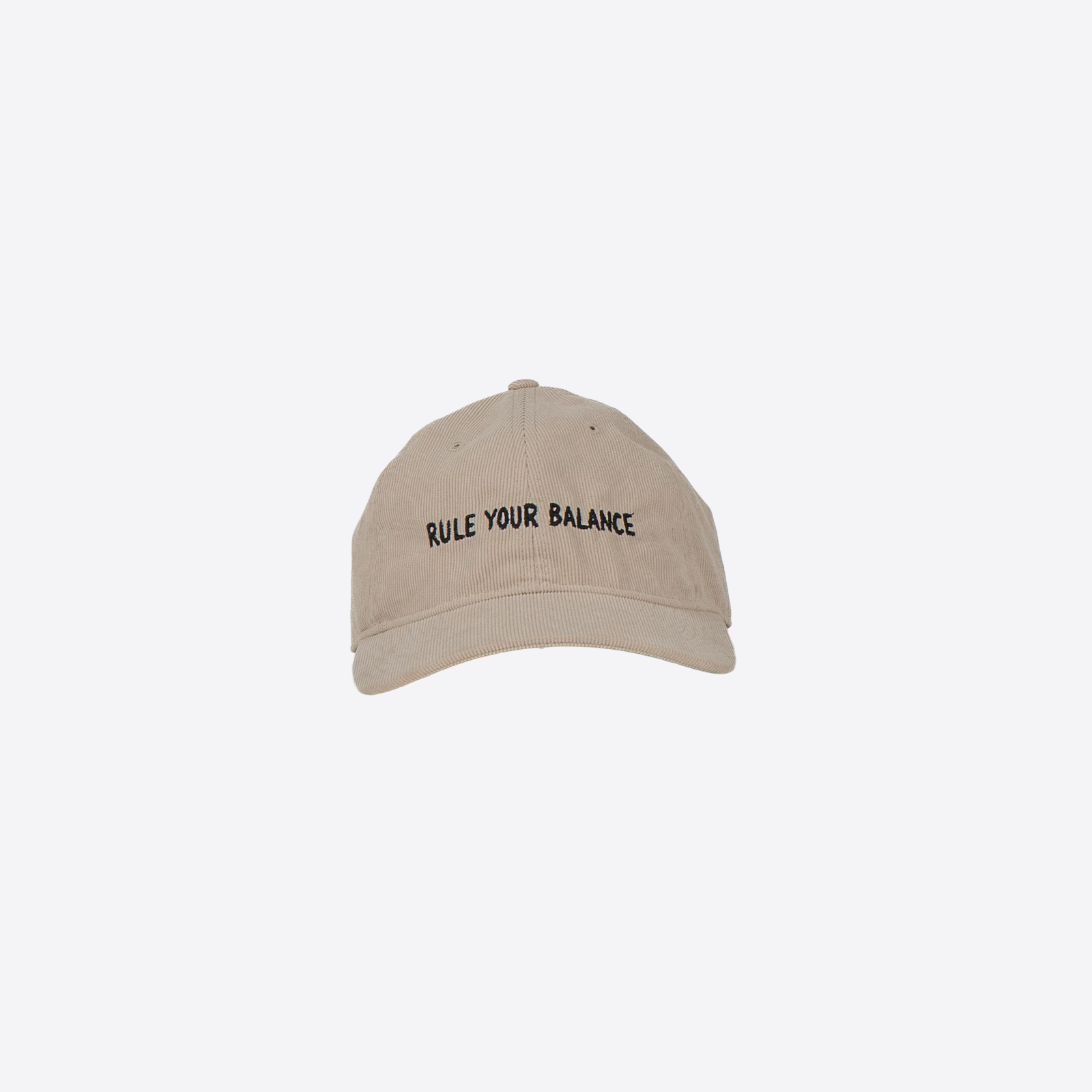 Unsere 'RULE YOUR BALANCE' Cord Cap in Beige vereint klassisches Design mit nachhaltigen Materialien. Der recycelte Cord verleiht ihr eine einzigartige Optik, während der Metallverschluss eine optimale Anpassung garantiert. Der Slogan als Stick auf der Vorderseite setzt ein klares Statement – stilsicher und zeitlos – Dein perfekter Begleiter für den Alltag.